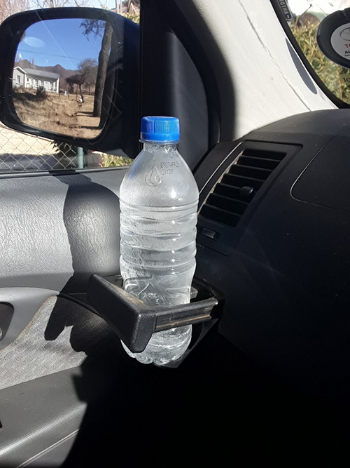 A bottle of water in my bakkie, still frozen solid @ 09h35, 21st July 2019