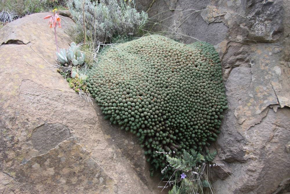 Succulents of the Mesembryanthemaceae family, referred to as “Mesembs” or “vygies” are to be found growing among the rocks, sometimes appearing to grow from the rock instead of soil. Most have pink flowers during the summer months. The genus Crassulaceae is also well represented with plants having differing growth habits but usually with small white star shaped flowers.