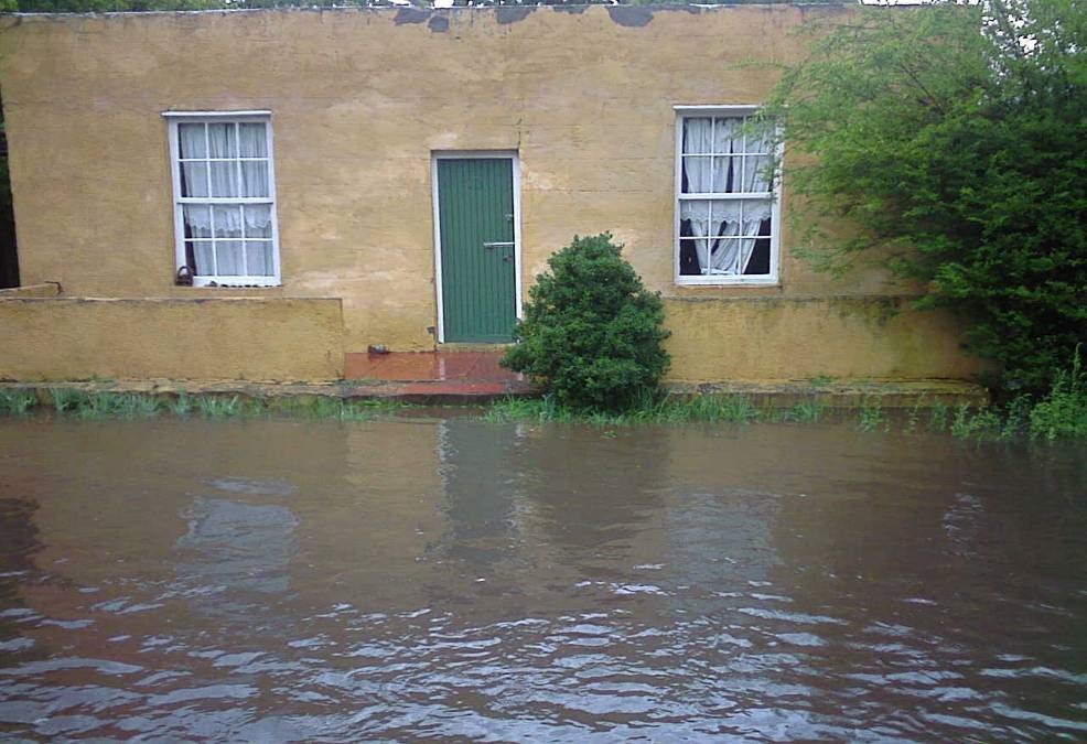 The week ending on the St Valentine’s Day 2009 saw great rainfall in the Bell River catchment that culminated in a deluge during the night of the 14th. The result was a flood that peaked during the afternoon of Sunday the 15th February 2009. The water level rose to within 150mm of the floor level of the cottage, “Basjan Blom”, closest to the flood on the corner of Main and Ross Streets and almost flooded the village pump station.