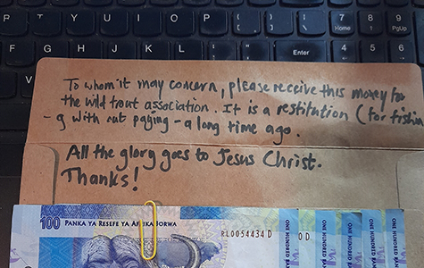 Envelope together with R500 that appeared anonymously at Walkerbouts recently: “Conscience money”!